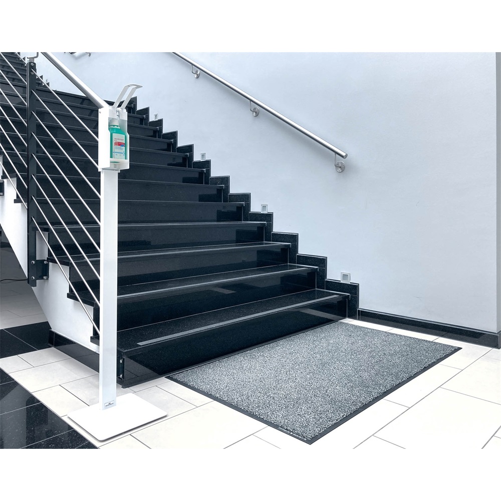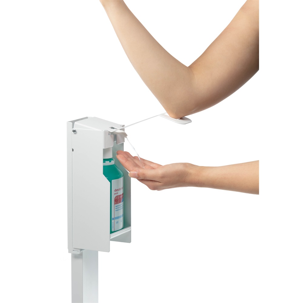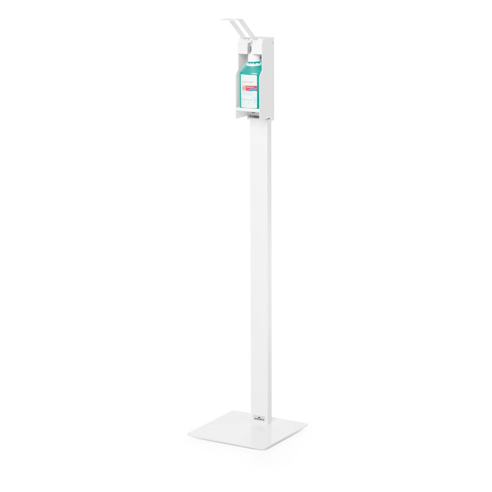 A fertőtlenítő állványok a védelmi és higiéniai koncepciók szerves részét képezik a megváltozott munkahelyi körülmények során. Akár az irodákban, bevásárló központokban, sport centrumokvan vagy orvosi rendelőkben. A DURABLE fertőtlenítő állványok könnyű kezelhetőséget, és sokféle felhasználási módot biztosítanak, mobil higiéniai állomásként. – Erős, kiváló minőségű adagoló fertőtlenítőszerhez, mobil, önálló padlóállványként – Hosszú karja lehetővé teszi, hogy a kéz, az alkar vagy a könyök segítségével üzemeltessük a nagyobb higiénia elérése érdekében – Különböző palackmérethez állítható a tartó magassága 235 mm-ig – Bármely 500 ml-es adagolófejes fertőtlenítőszer kihelyezésére alkalmas – Egyszerű és egyértelmű összeszerelés – Kiváló minőség és tartósság jellemzi. Anyaga: porszórt acéllemez – A szerelőkészletet és szerelési útmutatót a csomag tartalmazza – Méretek: 270 x 1384 x 289 mm (szélesség x magasság) Katalóguskód: 26060
