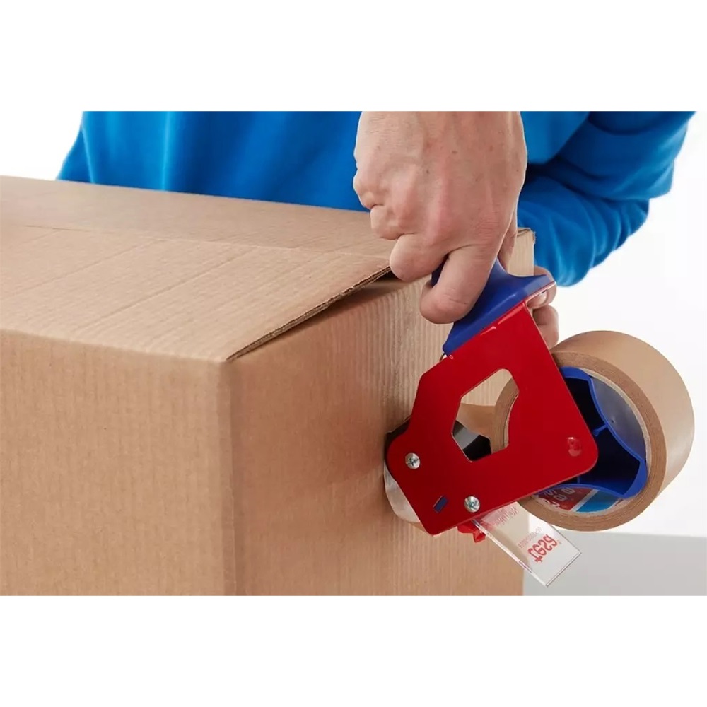 A tesa® 6300 egy költséghatékony kézi adagoló mindenfajta tesa® csomagolószalag professzionális lezárásához csomagolási és gyártási alkalmazásoknál. Az adagoló feszességszabályozóval van ellátva, hogy még a könnyen letekercselhető tesa® szalagok is problémamentesen használhatók legyenek. A pengét a sérülések megelőzésére burkolat óvja. Helyezze az adagolót a kartonra, és húzza maga felé. Az érintkezőgörgő erősen a szalagra nehezedik, amely ennek következtében leválik a tekercsről. Ha megdönti az adagolót, a fogazott penge elvágja a szalagot. A szalag elvágott végét a rugalmas leragasztólemez rányomja a kartonra. Katalóguskód: 4008