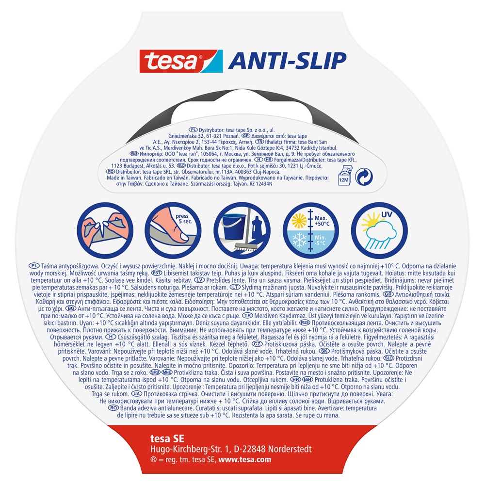 A tesa® csúszásgátló szalag extra biztonságot kínál csúszós padlók esetén. Ideális lépcsőkhöz, rámpákhoz, létrákhoz, hajótestekhez és más kritikus felületekhez. Katalóguskód: 34293
