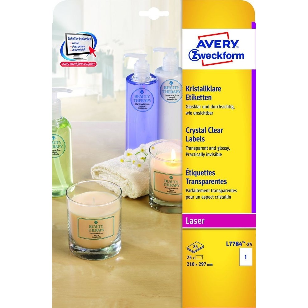 Címke mérete: 210 x 297 mm Doboz tartalma: 25 darab címke – 25 ív/doboz (1 címke / lap) Tökéletes megoldást nyújtanak az üveg, műanyag és fém tárgyak, valamint egyéb fényes felületek felcímkézésére. 25 átlátszó, poliészter címke 25 íven. A címkék olaj-, szennyeződés- és hőállóak (-20°C és +80°C között), cseppállóak és szakadásbiztosak. Tervezze meg és nyomtassa ki címkéit gyorsan és egyszerűen – ingyenes szoftverünkért és sablonjainkért látogasson el a http://www.avery.hu/templates-software/ weboldalra vagy használja a Microsoft® Office csomagokba beépített sablonjainkat! Kifejezetten lézer és színes lézer nyomtatókhoz fejlesztve.Katalóguskód: 25319