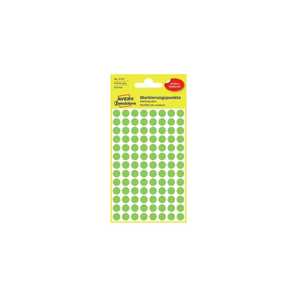 Címke mérete: 8 mm Csomag tartalma: 416 jelölőpont/csomag Az AVERY ZWECKFORM jelölőpontok tökéletesek jelölésre, rendszerezésre, tervezésre, iratrendezésre. Katalóguskód: 25366