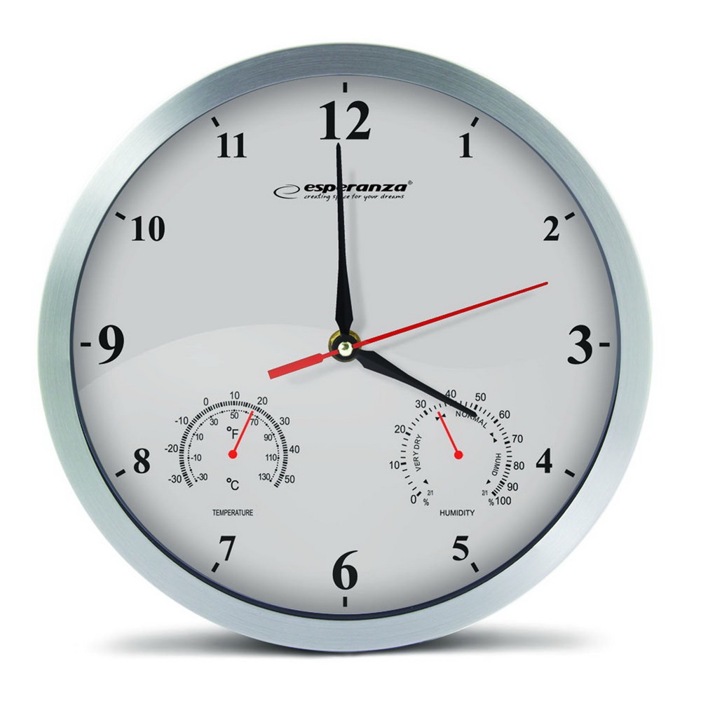 Ez az óra nem csak a pontos időt mutatja, hanem a szoba hőmérsékletét és a páratartalmat is. Rendkívül elegáns és stílusos kialakításának köszönhetően kiválóan alkalmas lakások, irodák, üzletek vagy éttermek díszítésére. A nagyméretű tárcsa megkönnyíti az idősebb emberek számára az idő leolvasását a szobában, bárhol. Átmérő: 30 cm Vastagság: 4cm Anyag: Alumínium keret Óra tárcsás lemez: art papír Tápegység: 1x AA elem (nem tartozék) Csendes mozgás – zökkenőmentes működés, Rendkívül pontos mechanikus mozgás: kvarc, Beágyazott akasztó az egyszerű telepítéshez, Mérések: hőmérséklet és páratartalom Mérési hőmérsékleti tartomány: -30 ° C ~ + 50 ° C, -30 ° F ~ 110 ° F Páratartalom mérési tartomány: 0 ~ 100% 1 év garancia Gyártó: Esperanza Szélesség cm: 31,6 Hosszúság cm: 4,6 Magasság cm: 31,5 Katalóguskód: 28503
