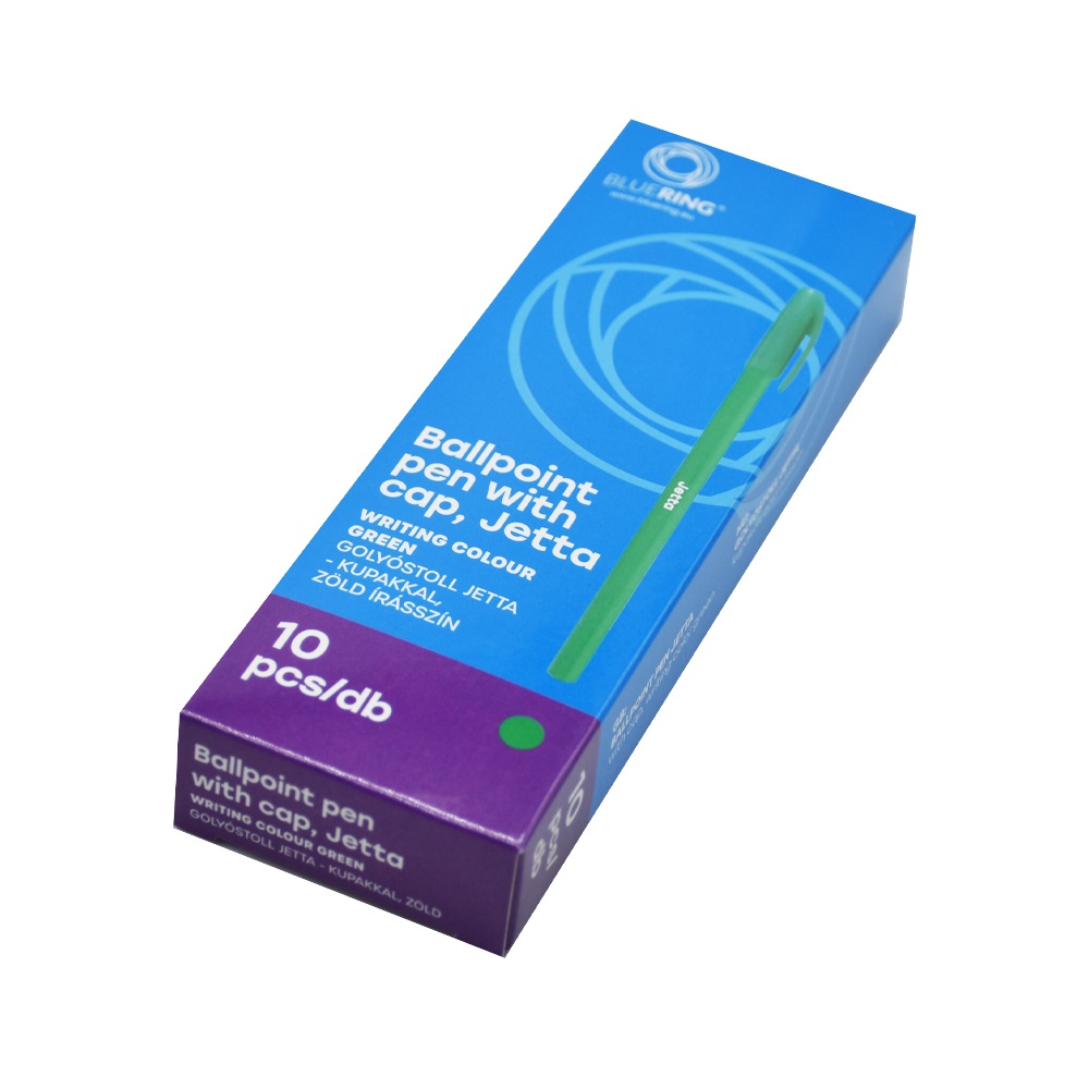 Nem cserélhető betétes, hatszögletű, légáteresztő biztonsági kupakos, színes testű golyóstoll 4 alapszínben. Az írás színe azonos a test színével.