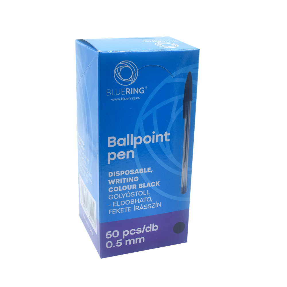 Eldobható, kupakos golyóstoll műanyag testtel. A kupak színével megegyező tinta. Katalóguskód: 8913