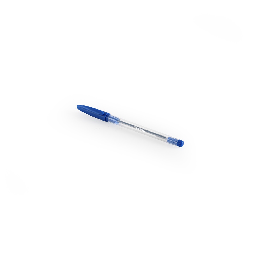 Eldobható golyóstoll átlátszó testtel, mely lehetővé teszi a tinta mennyiségének figyelemmel követését. A toll fogórészének és kupakjának színe megegyezik az íráskép színével. Bordázott fogórész a csúszásmentes fogás érdekében. Nyomtatott logó a testen.