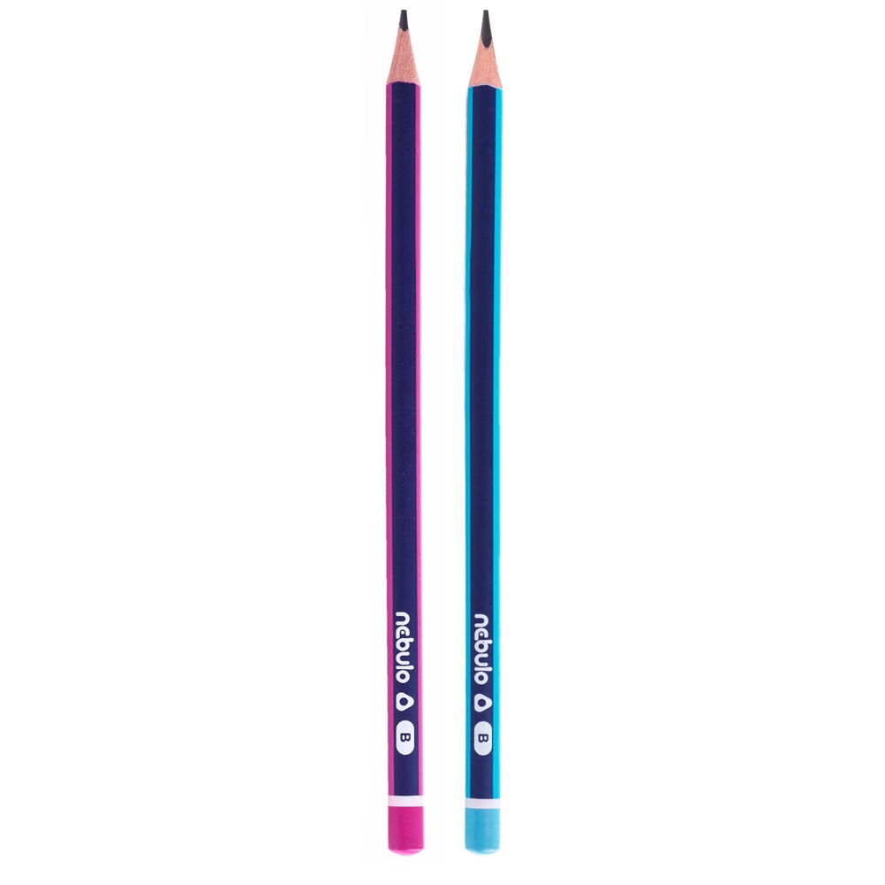 Kiváló minőségű grafitceruza, festett fatesttel, erős heggyel. Ergonomikus, háromszögletű forma. 6 lila és 6 kék csíkos ceruza a dobozban, vonalkóddal ellátva. Keménység: B Katalóguskód: 32252