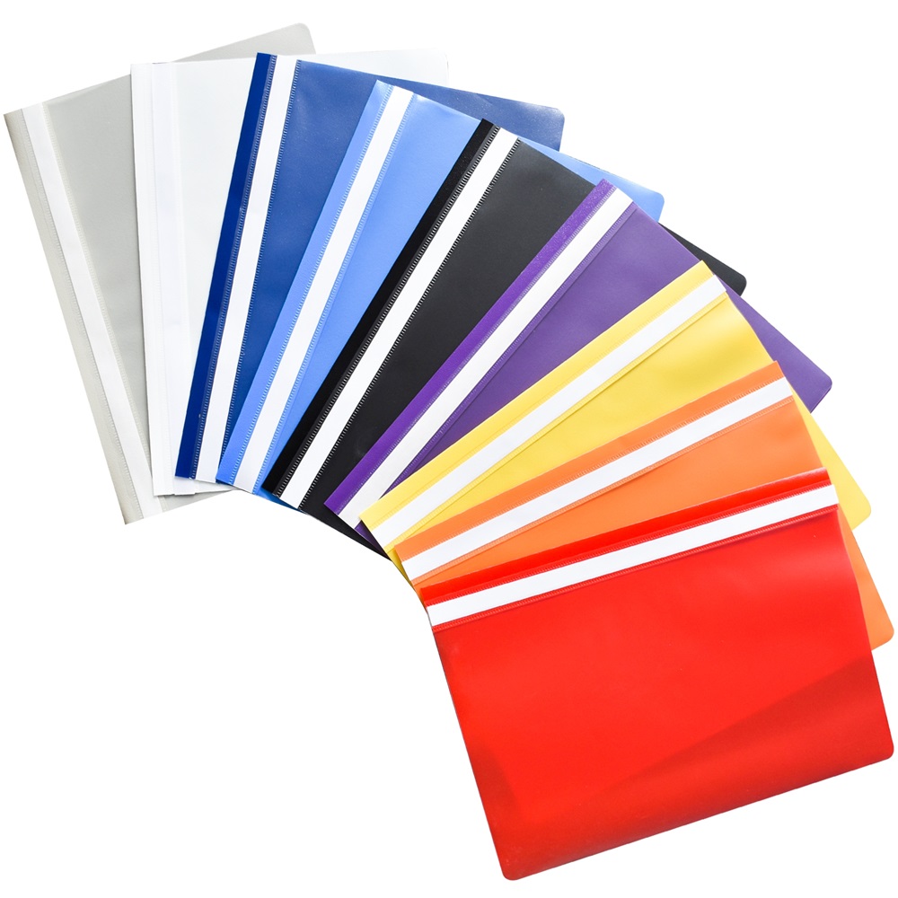 Gyorslefűző a lyukasztott lapok rendszerezésére és védelmére. Fém lefűző szerkezet műanyag leszorítóval. Az áttetsző, nem tükröződő borító látni engedi a dokumentum első oldalát. Hosszú címketartó, a címke kivételét ill. behelyezését segítő kivágással. Katalóguskód: 22772
