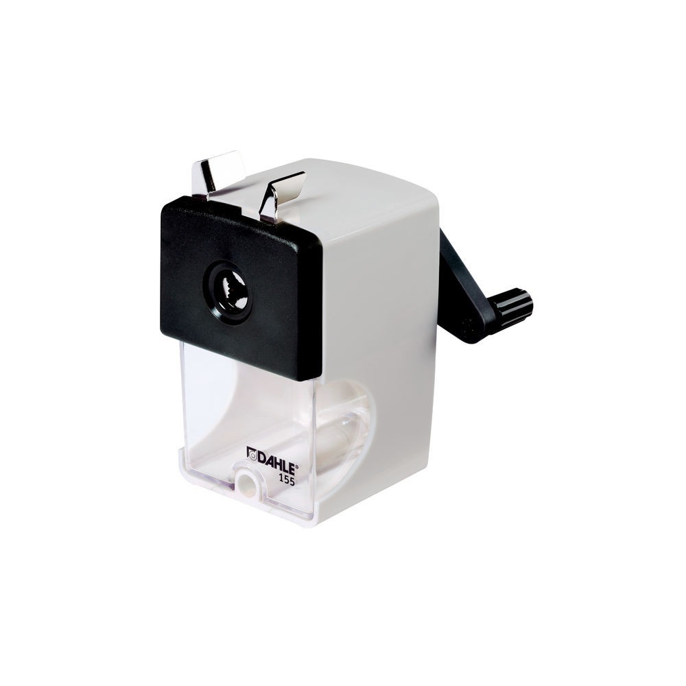 Dahle forgótárcsás ceruzahegyező Ez egy professzionális hegyező, amely messze meghaladja az elvárásokat. A bemeneti nyílás 12 mm széles, a ceruzát – behelyezésekor – egy igen stabil fém tárcsákból álló rögzítő stabilizálja, ezáltal kiválóan használható különböző vastagságú grafit ceruzákhoz, háromszögletű ceruzákhoz és a nagyobb méretű viasz ceruzákhoz. A hegyező hátoldalán állítható nyomógomb található, amellyel egyszerűen beállítható a hegy élessége, hosszúsága, és akár tompa hegy is kialakítható. A vágópengék egyszerűen kiszedhetők és tisztíthatók, ezzel elkerülhető a viasz felhalmozódása a pengéken. Hordozható, de szükség esetén – a rögzítő bilincsek segítségével – asztalhoz is rögzíthető.Katalóguskód: 29723