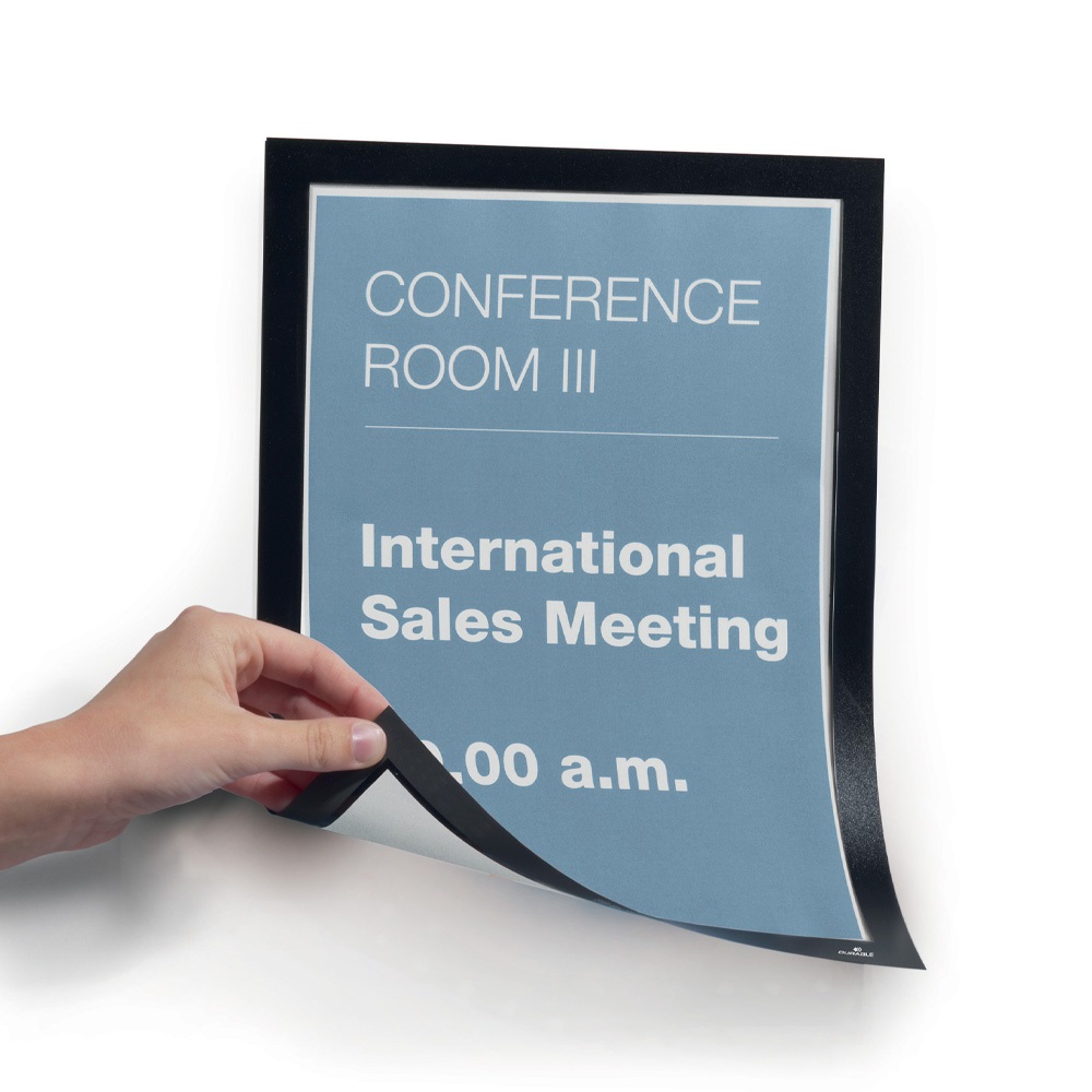 DURAFRAME® MAGNETIC egy mágneses információs keret, amely alkalmas figyelmeztetések, dokumentumok, jelölések és információk kihelyezésére többféle méretben. Kihelyezhető sima, fém felületekre. A tartalom könnyedén cserélhető a mágneses keret fémről történő felemelésével. • Információ kihelyezés tökéletesen • A dokumentumok egyszerű cseréje • Fém felületeken egyszerűen használható (fehértábla, fém szekrény, gépek) • Felhasználási terület: A3-as méretben, pl. gépek használati útmutatója a dolgozók számára • Álló és fekvő formátumban is használható • Külső méret: 236 x 323 mm Katalóguskód: 24800