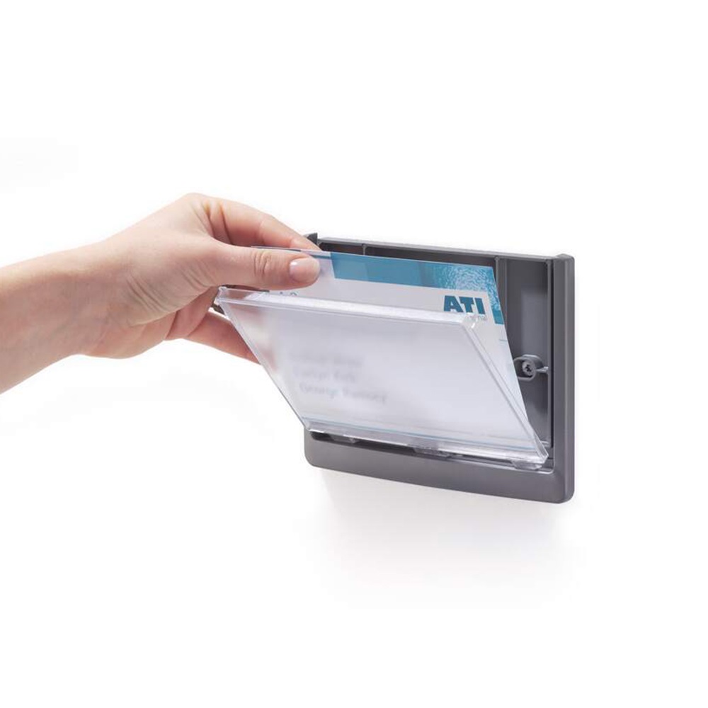 Irányítótábla, stílusosan megtervezett, lekerekített sarkokkal, így a modern design funkcióval párosul. Az insertek könnyedén cserélhetők az átlátszó panel kihúzásával. Ideális megoldás olyan helyeken, ahol az információkat gyakran kell cserélni, mint például hotelekben, konferencia termekben, kórházakban. Nyomtatható insertek külön kaphatók. Katalóguskód: 51738