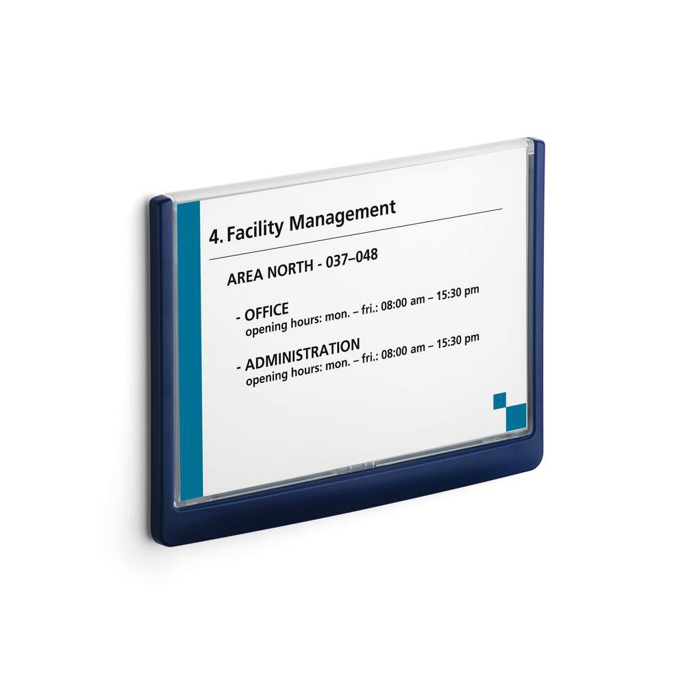 Irányítótábla, stílusosan megtervezett, lekerekített sarkokkal, így a modern design funkcióval párosul. Az insertek könnyedén cserélhetők az átlátszó panel kihúzásával. Ideális megoldás olyan helyeken, ahol az információkat gyakran kell cserélni, mint például hotelekben, konferencia termekben, kórházakban. Nyomtatható insertek külön kaphatók. Katalóguskód: 51746