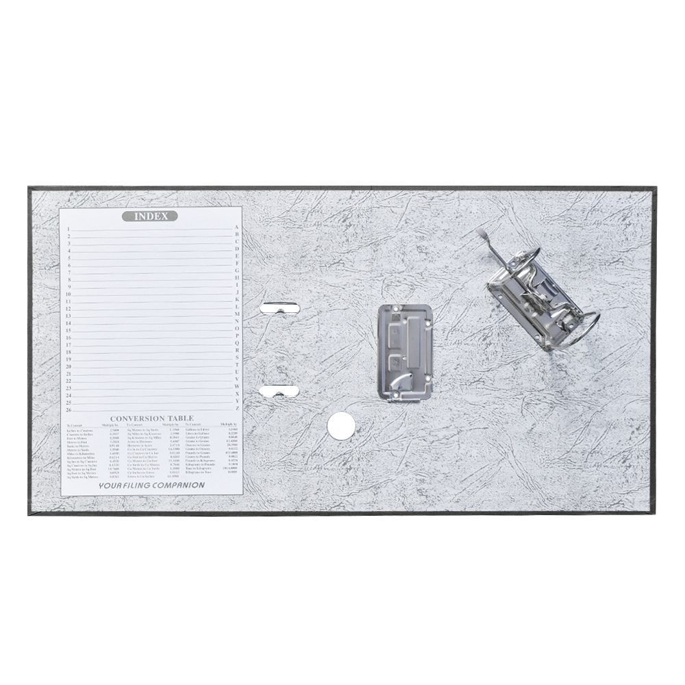 Emelőkaros iratrendező általános használatra. Kívül PP, belül fehér karton borítással, kihúzólyukkal. Cserélhető gerinccímke a feliratozáshoz. Tárolókapacitás 350 lap (A4 80gr.). A terméket lapra szerelve szállítjuk, a mellékelt emelőkaros szerkezet bepattintása gyors és egyszerű, 5 másodperc alatt elvégezhető és iratrendezőnk máris használatra kész! Katalóguskód: 12055
