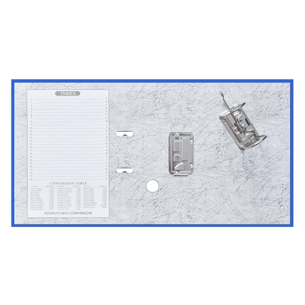 Emelőkaros iratrendező általános használatra. Kívül PP, belül fehér karton borítással, kihúzólyukkal. Cserélhető gerinccímke a feliratozáshoz. Tárolókapacitás 350 lap (A4 80gr.). A terméket lapra szerelve szállítjuk, a mellékelt emelőkaros szerkezet bepattintása gyors és egyszerű, 5 másodperc alatt elvégezhető és iratrendezőnk máris használatra kész! Katalóguskód: 12056