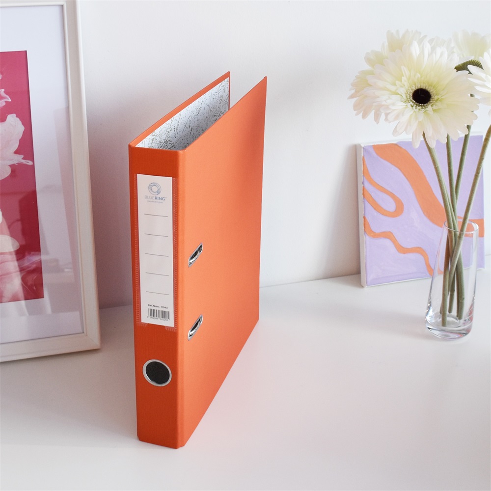 Emelőkaros iratrendező általános használatra. Kívül PP, belül fehér karton borítással, kihúzólyukkal. Cserélhető gerinccímke a feliratozáshoz. Tárolókapacitás 350 lap (A4 80gr.). A terméket lapra szerelve szállítjuk, a mellékelt emelőkaros szerkezet bepattintása gyors és egyszerű, 5 másodperc alatt elvégezhető és iratrendezőnk máris használatra kész! Katalóguskód: 26366