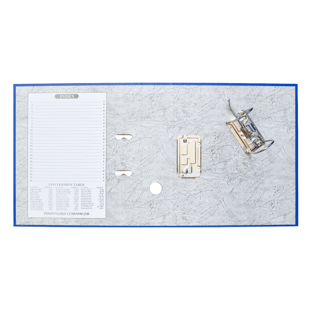 Emelőkaros iratrendező általános használatra. Kívül PP, belül fehér karton borítással, kihúzólyukkal. Cserélhető gerinccímke a feliratozáshoz. Tárolókapacitás 500 lap (A4 80gr.). A terméket lapra szerelve szállítjuk, a mellékelt emelőkaros szerkezet bepattintása gyors és egyszerű, 5 másodperc alatt elvégezhető és iratrendezőnk máris használatra kész! Katalóguskód: 12063