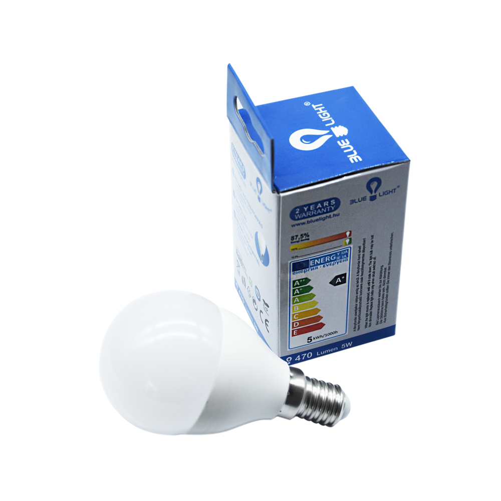 LED Izzó 5W E14 Mini Bulb 470 Lm 2700K50W megfelelő meleg fehér Feszültség 230V ACÁram: 48 mAMéret D45*86 mm csomagolási egység: 100 db/karton TÜV ROHS CE Katalóguskód: 13228