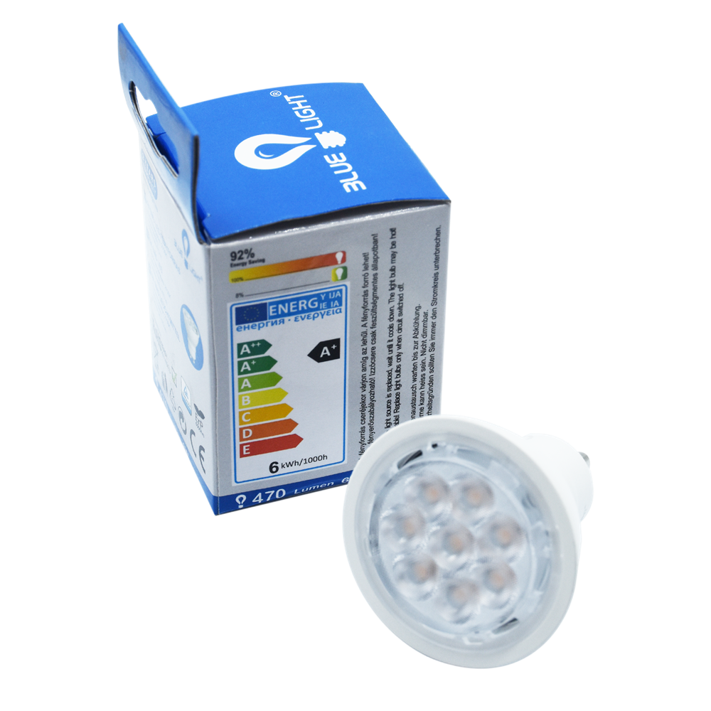 LED Izzó 6W GU10 470 Lm 2700k 75W megfelelő meleg fehér Feszültség 230V ACÁram: 48 mAMéret D49,8*54 mm csomagolási egység: 100 db/karton TÜV ROHS CE Katalóguskód: 13221