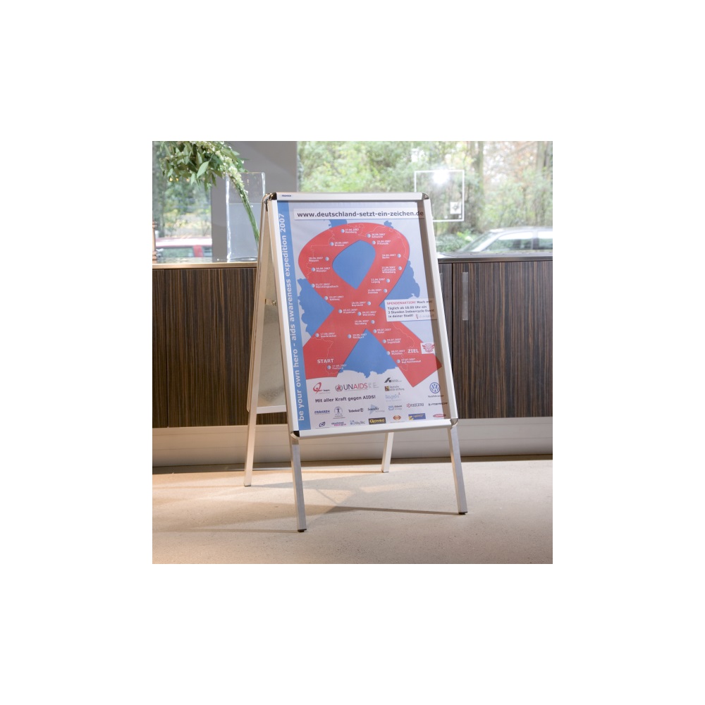 Vonzza a járókelők figyelmét! Eloxált alumínium pattintókerettel (32 mm) a plakátok egyszerű és gyors cseréjéhez. Tükröződésmentes, UV-szűrűs műanyag fedlappal szállítjuk, mely szárazon letörölhető. Beltéri és kültéri használatra. Kétoldalas, összecsukható, hordozható. Nincs szükség szerszámokra a használatba vételhez.Méret: 14,5x105x52 cm Katalóguskód: 30736