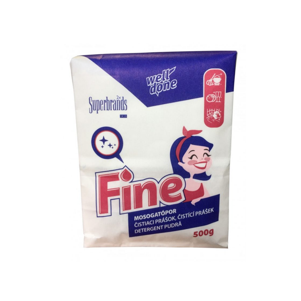 Fine mosogatópor Alkalmas zsírtalanításra, konyhai edények, tányérok, evő eszközök, csempék, ablakok, műanyagok tisztítására. A mosogatópor vízben jól oldódó mosogató- és tisztítószer. Kemény vízben is hatékony, kitűnő zsíroldószer. Alkalmas háztartási és ipari edények mosogatására.
