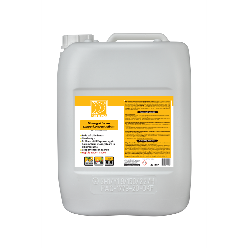 Mosogatószer 20000 ml kézi szuperkoncentrátum Brilliance termék alkalmazásakor ügyeljen a biztonságra!