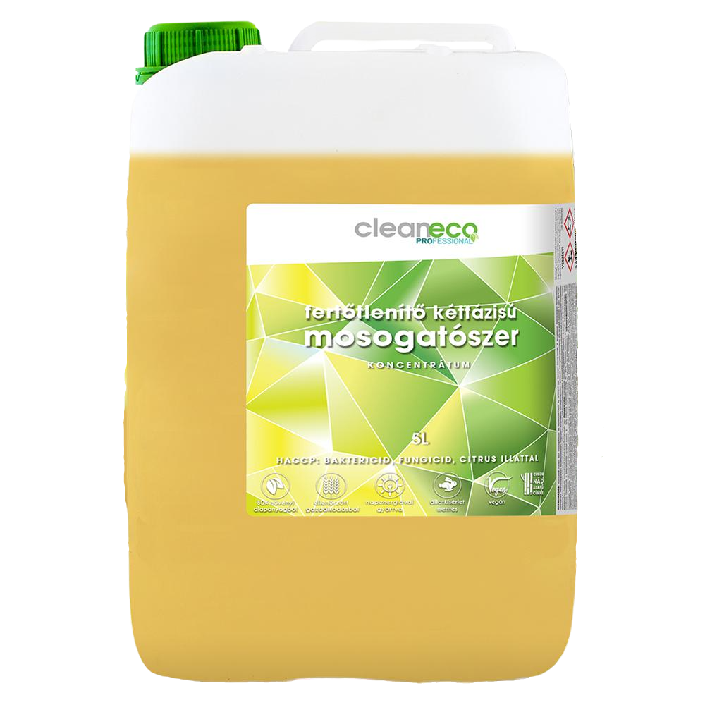 Mosogatószer 5 liter kézi fertőtlenítő hatással Cleaneco termék alkalmazásakor ügyeljen a biztonságra! Használat előtt mindig olvassa el a címkét és a használati útmutatót!
