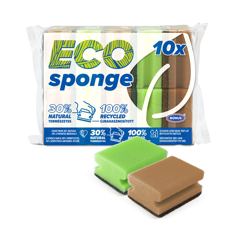 A BONUS ECO Formázott mosogatószivacs nem ismer lehetetlent, ha kíméletesen hatékony takarításról van szó.