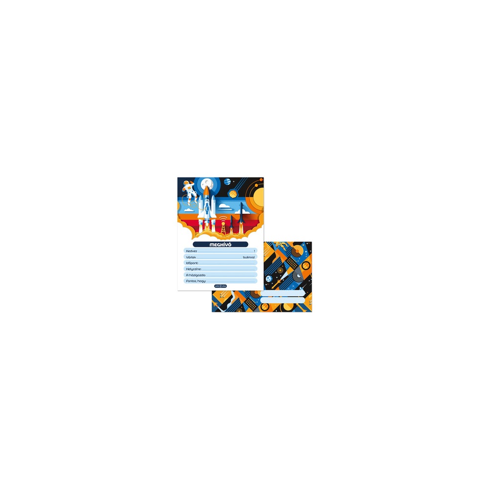 13 db különböző alkalomra használható partimeghívó lap és 10 db C/6 méretű, hozzáillő mintájú boríték egy csomagban. 80 gr-os, szép fehér ofszet papírra, négy szín nyomással készült. Golyóstollal és filccel is írható. Felakasztható, négy színnel nyomott fejléccel. A boríték postai szabványnak megfelelő méretű.  Hiteles tájékoztatás: Elkötelezettek vagyunk termékeink biztonságának garantálásáért, nyomon követjük a termékbiztonsággal kapcsolatos valamennyi európai uniós és hazai szabályozást és biztosítjuk termékeink azoknak történő megfelelését. Az EU 2023/988-as számú Általános Termékbiztonsági Rendeletét (GPSR) is alkalmazzuk, így ha a termékeink biztonságát illetően fogyasztóként kérdése, észrevétele van, vagy esetleg balesetről van tudomása, kérjük, írja meg nekünk. GPSR: Ars Una Studio Kft., H-1113 Budapest, Csetneki u. 13.,webshop@arsuna.hu, https://arsuna.hu/