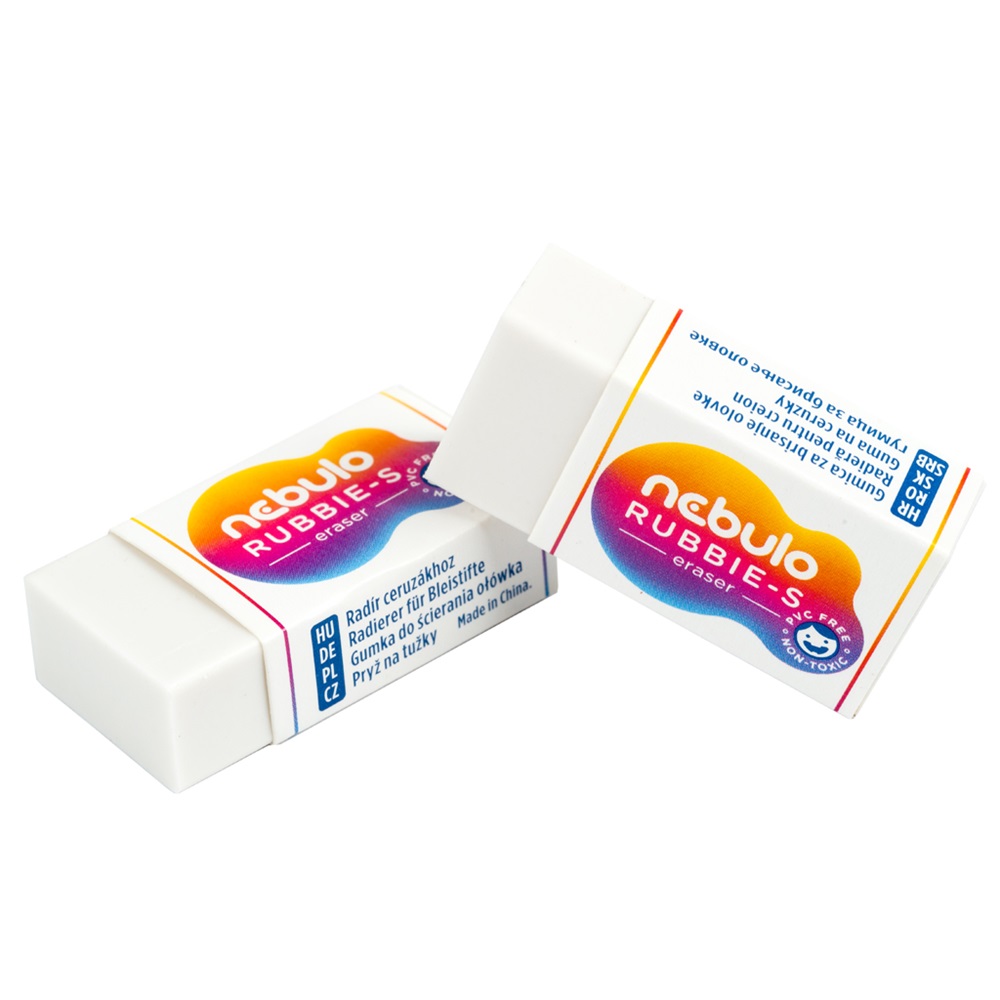Nebulo Rubbie minőségi gumi radírok papír tokban. Ideálisak ceruzavonalak radírozásához. PVC mentesek, nem tartalmaznak egészségre káros anyagot. A radír forgácsmentes anyagból készül, így a radírozás során a forgács nem hullik apró darabokra, ezzel biztosítva a tisztább, foltmentes munkát. Rubbie-S mérete: 40*20*11 mm Katalóguskód: 27169