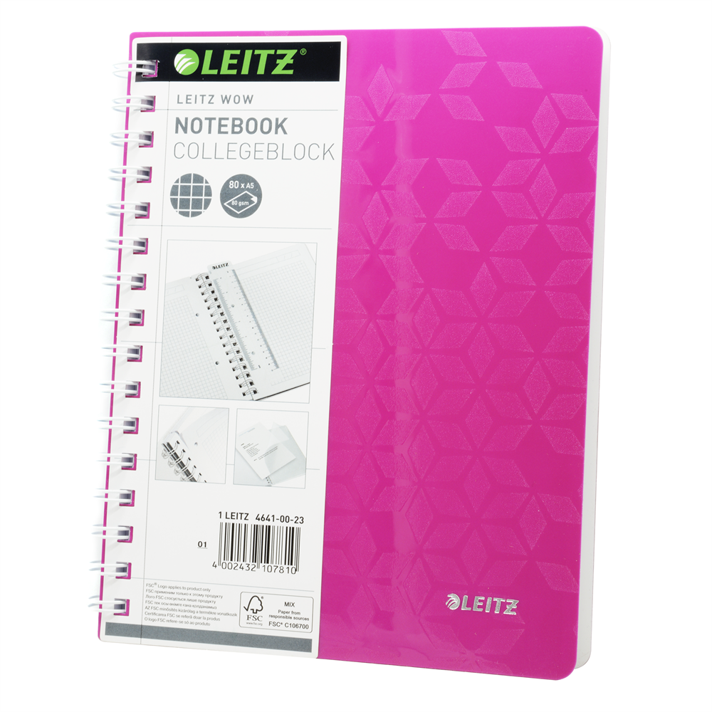 A funkcionalitás és dizájn tökéletes kombinációja. Spirálfüzet lefűzhető tasakkal a különálló lapok számára. Ragyogó WOW színekben és stílusos geometriai mintázattal a borítón. Kettős színhatású PP borító kívül WOW színekben és dombornyomott felülettel, belül fehér színben 80 lap 80g-os magas opacitású papírból Mikropreforált és lyukasztott lapok Könyvjelzőként is használható vonalzó Kiegészítő tasak különálló lapok, jegyzetek, szórólapok tárolásához Kerettel ellátott vonalazás, fejléccel a cím és dátum feltüntetéséhez minden oldalon Elérhető különböző méretben, színben, vonalas és kockás mintázattal Jól kiegészíti a WOW termékcsalád többi termékét az iroda vagy otthoni iroda tökéletes összhangja érdekében Katalóguskód: 35639