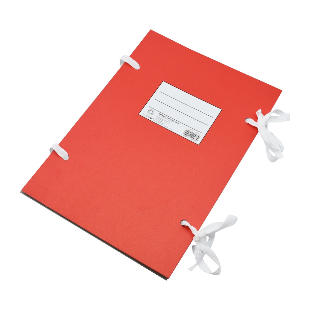 Piros színű vastag 1050gr alapanyagból készült szalagos irományfedél. A4 méretű dokumentumok tárolására.