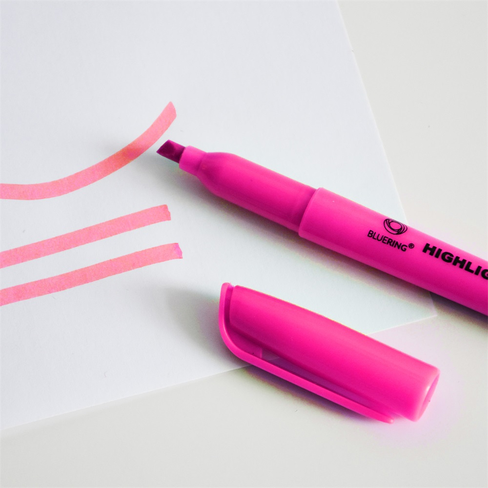 Speciális fluoreszkáló festékkel töltött kerek testű szövegkiemelő. A kiemelt szöveg fénymásolható,faxolható. Klippel ellátott kupak, mely légmentesen zár. Festék színével megegyező kupak és testszín. Vágott csúccsal, 4 féle élénk színben. Vonalvastagság: 1-2 mm (íróhegy élével), 3-4 mm (íróhegy lapjával). Katalóguskód: 12164