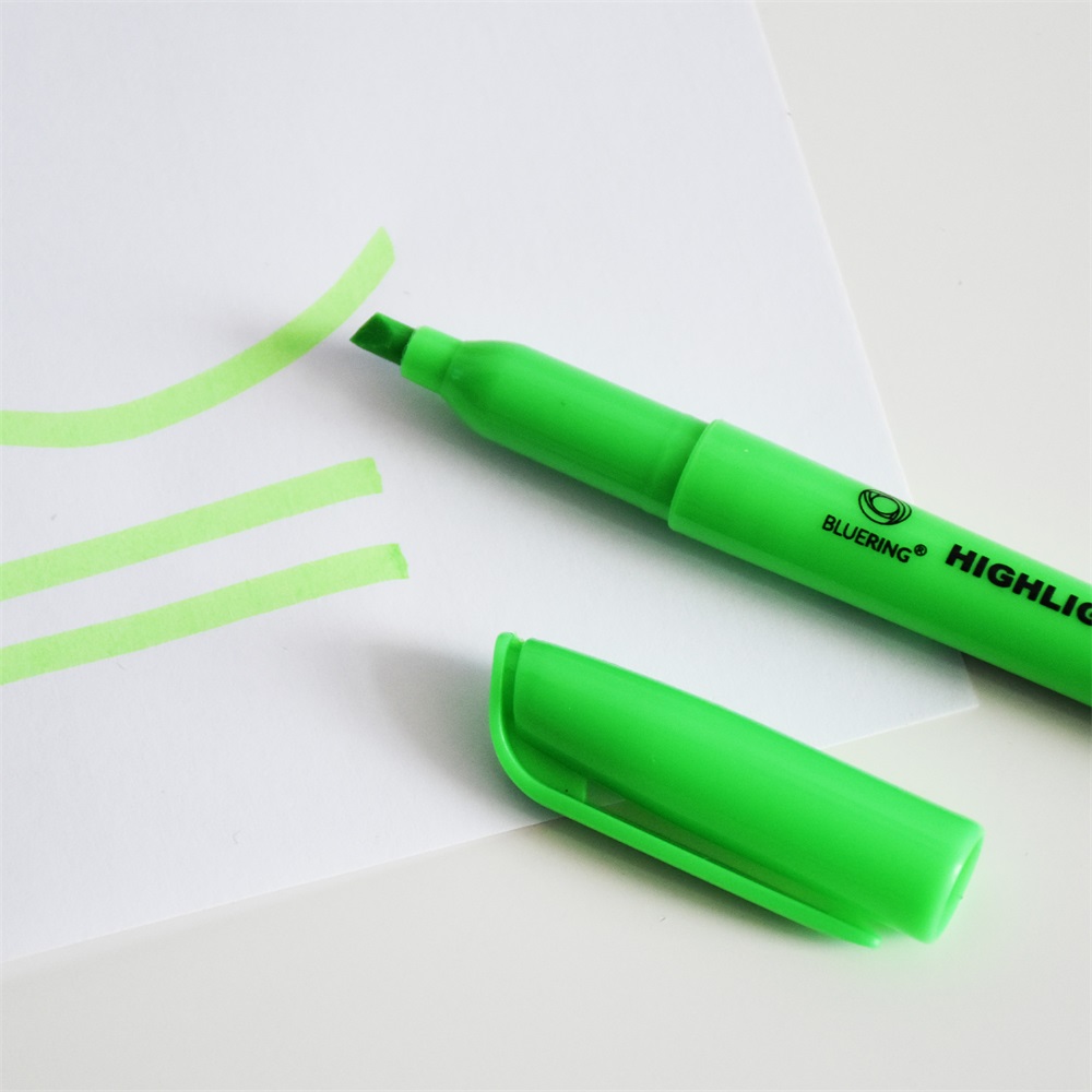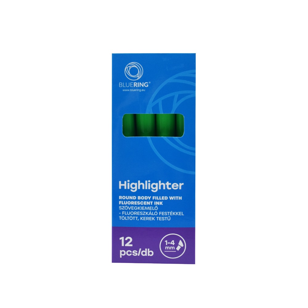 Speciális fluoreszkáló festékkel töltött kerek testű szövegkiemelő. A kiemelt szöveg fénymásolható,faxolható. Klippel ellátott kupak, mely légmentesen zár. Festék színével megegyező kupak és testszín. Vágott csúccsal, 4 féle élénk színben. Vonalvastagság: 1-2 mm (íróhegy élével), 3-4 mm (íróhegy lapjával). Katalóguskód: 12165