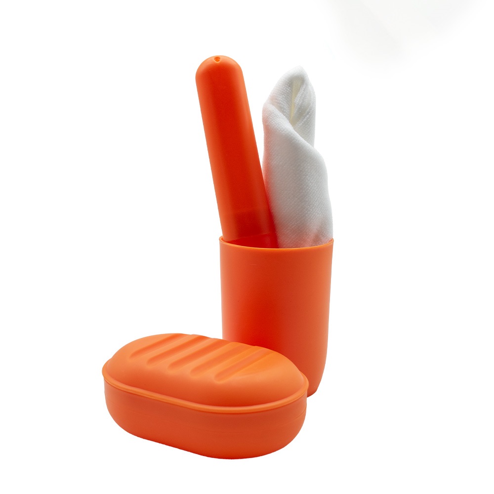 Tisztasági csomag összehúzható, zsinóros átlátszó zsákban. Tartalma: műanyag pohár, szappantartó, fogkefetartó, kéztörlő.