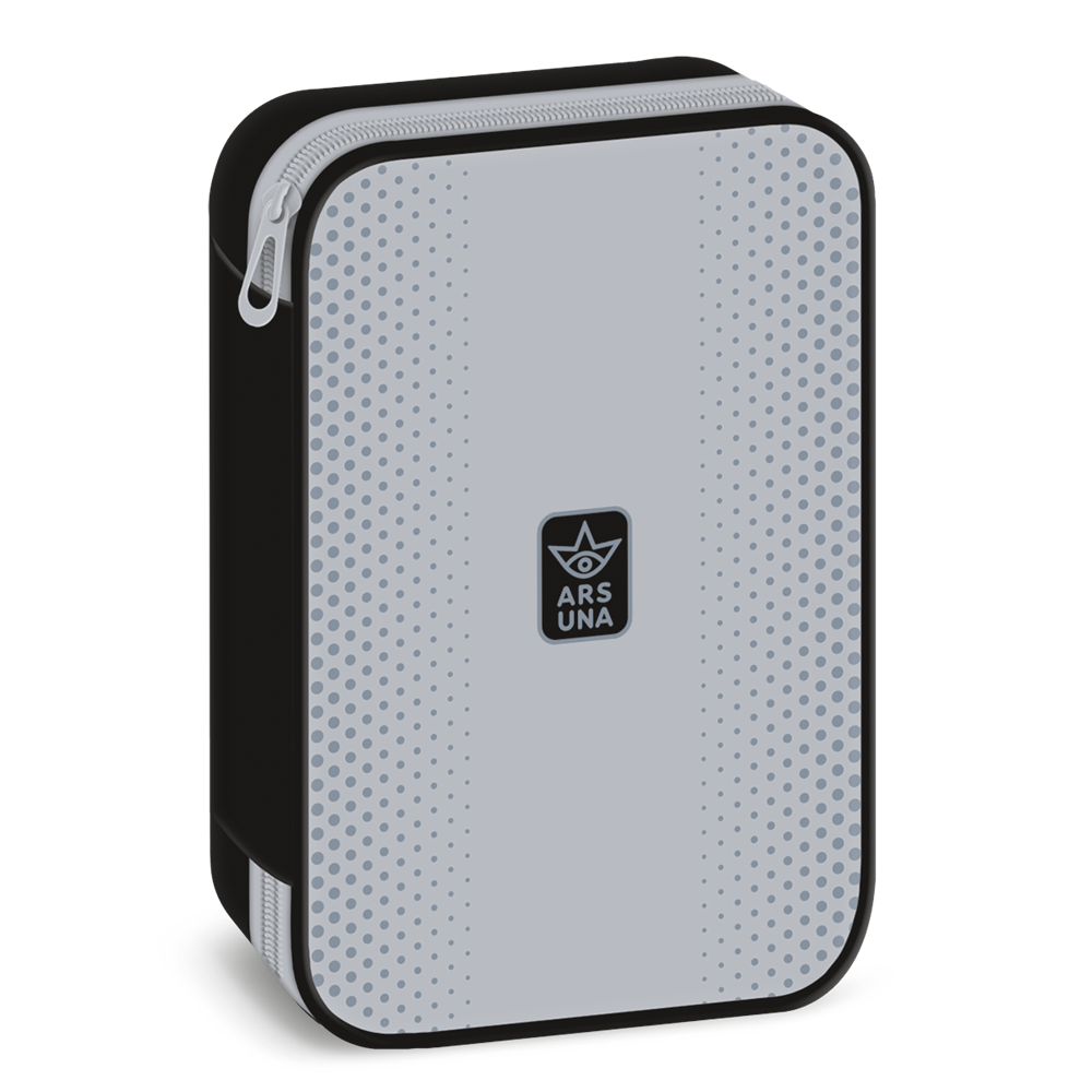 Többszintes, töltetlen, cipzáras tolltartó. Belül textillel bevont merev lapokkal, gumis kialakítással 30 ceruza számára az írószerek tárolásához és egy cipzáras belső zsebbel.