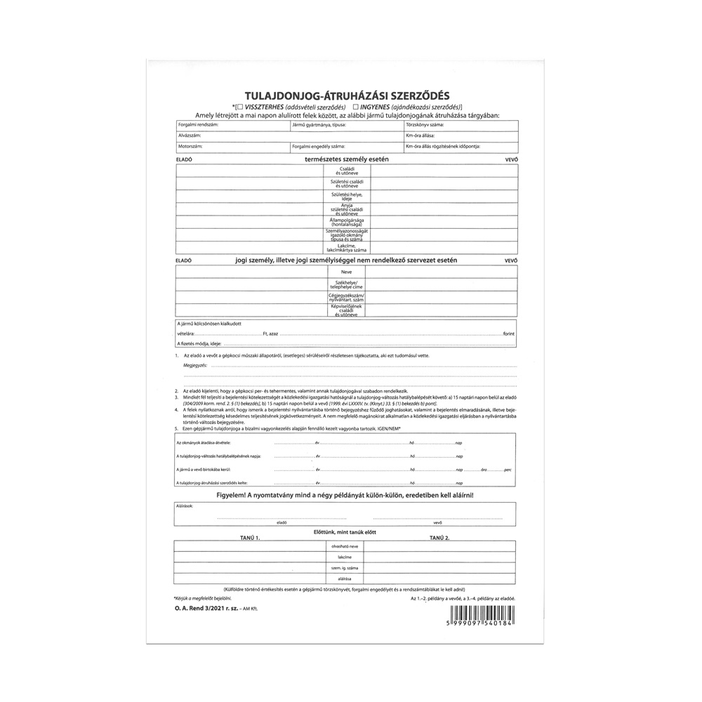 Személygépkocsi adásvételi szerződés