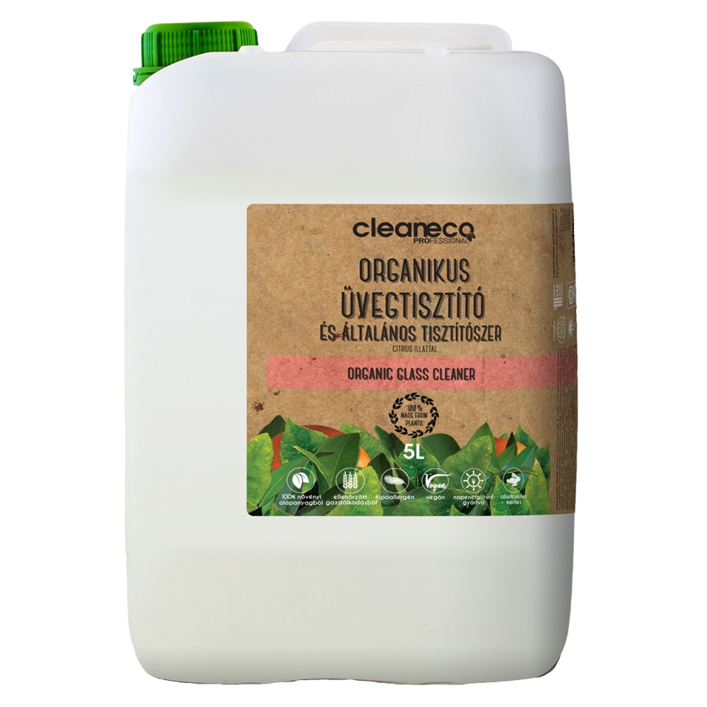Üvegtisztító munkaoldat 5000 ml organikus Cleaneco termék alkalmazásakor ügyeljen a biztonságra! Használat előtt mindig olvassa el a címkét és a használati útmutatót!