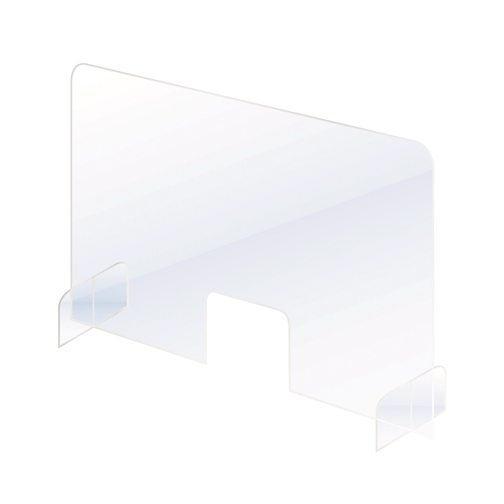 Pult és asztal osztó. 20 x 25 cm kivágás az alján a tárgyak, dokumentumok átadásához. Átlátszó, könnyen tisztítható és fertőtleníthető. Könnyen összeszerelhető ( nincs szükség szerszámokra), hordozható. 24 cm alapmélység biztosítja, hogy a legtöbb pulton használható legyen. Méret : 67 x 84,5 x 24 cm (SzxMxM) – álló. Katalóguskód: 30842
