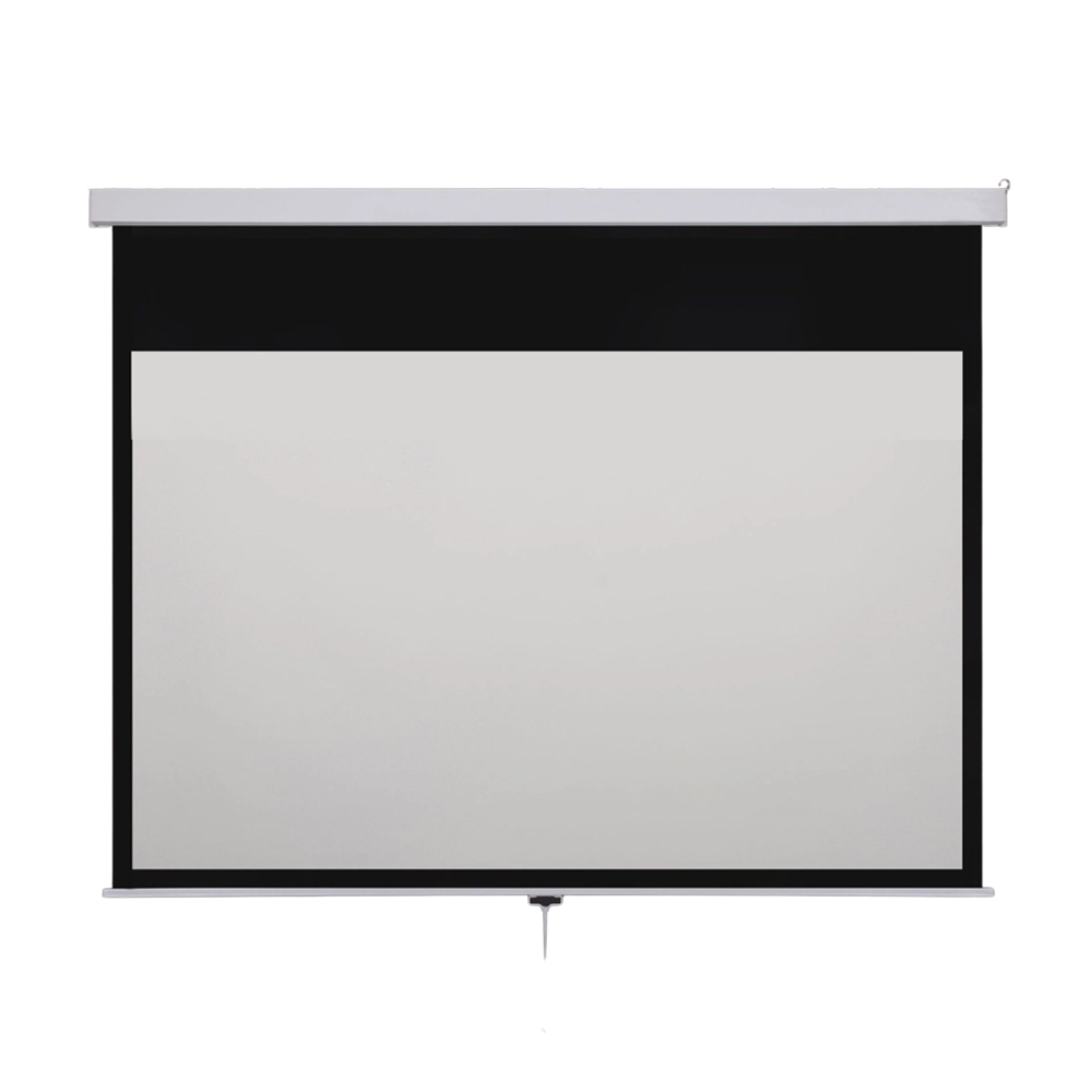 Falra vagy mennyezetre szerelhető vetítővászon, kézi mozgatású, rolós vetítővászon, lassított visszahúzású mechanikával Matt fehér vászonfelület, amely valósághűen adja vissza a színeket. Fekete képernyő szegély biztosítja a vetített kép tiszta elhatárolását.