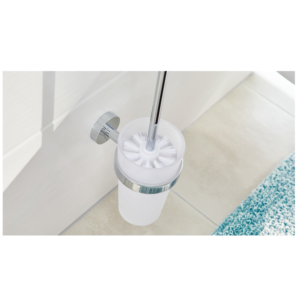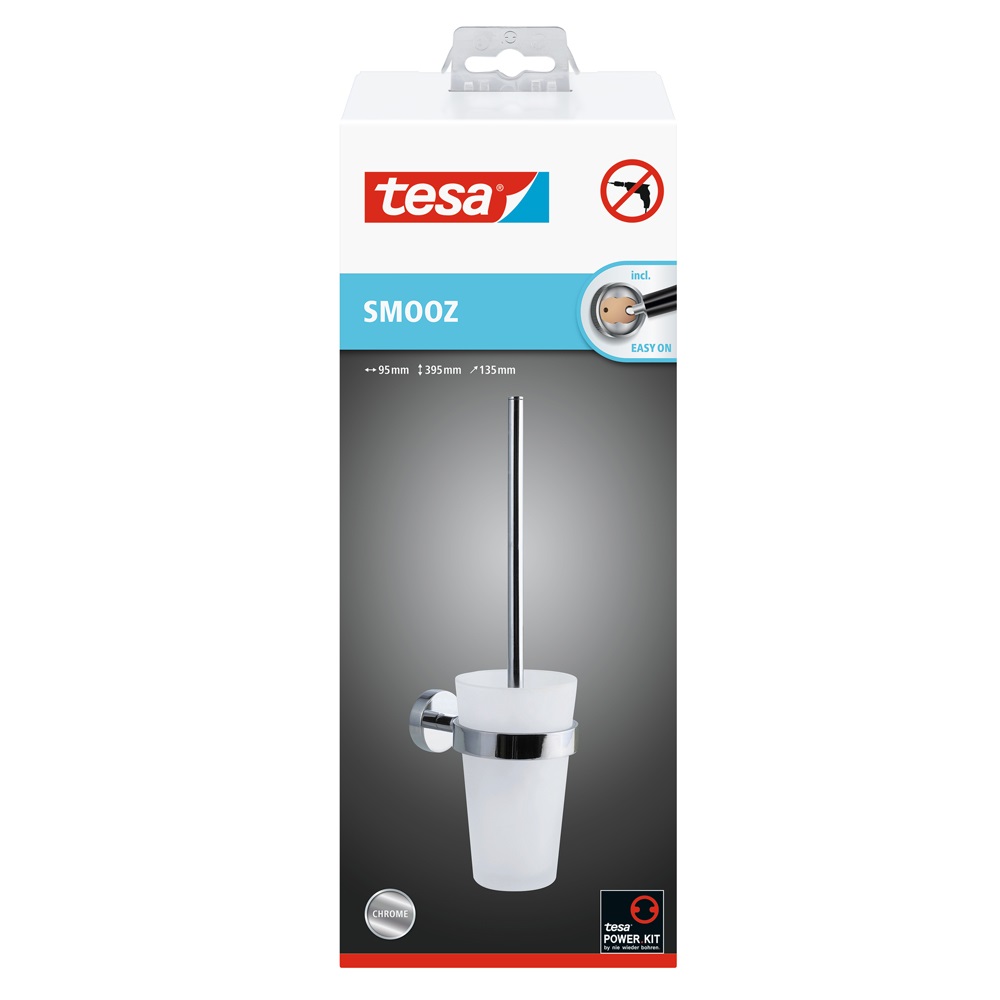 A tesa® SMOOZ WC-kefe szettet a praktikus elegancia fémjelzi. Fúrás nélkül is stabilan rögzíthető a falra, a ragasztós megoldás pedig rendkívül tartós tapadást biztosít. A készlet bármikor, a fal sérülése nélkül eltávolítható, nincs visszamaradt ragasztó. Az ismételt rögzítéshez csupán egy új BK20 adapterre van szükség. WC-kefe szett, szabadalmaztatott tesa® Power.Kit technológiával (átfogó ragasztós megoldás) Egyszerű és elegáns, magasfényű krómozott fém, lekerekített stílus, homokfúvott üveg Biztos rögzítés, vízálló, garantáltan rozsdamentes Katalóguskód: 34570