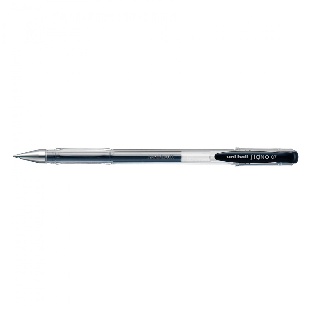 Rozsdamentes acél hegyű, átlátszó testű, nagy betétes, a tinta színével megegyező klipszű zselés toll. Jellegzetesen lágy, fényes írásmóddal, víz és UV-álló tintával, nagy színválasztékban. Írásvastagság: 0,3 mm. Betét: UMR-5. Katalóguskód: 1522